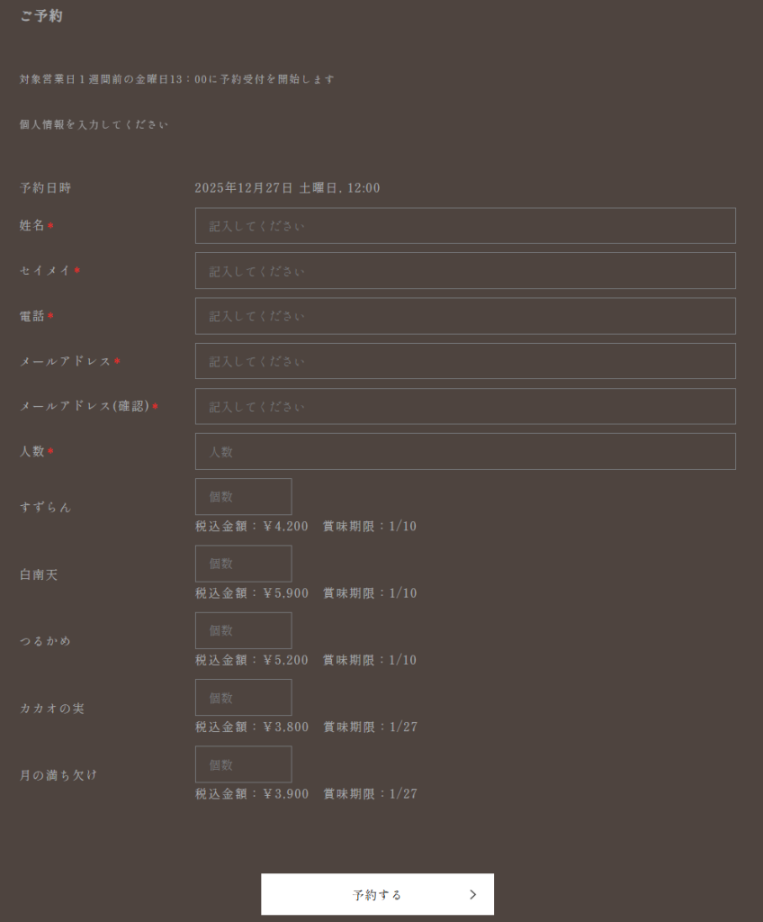 ↓↓↓ (ご参考)12/27sat. 12:00の予約枠を選択した場合の入力ページ ↓↓↓