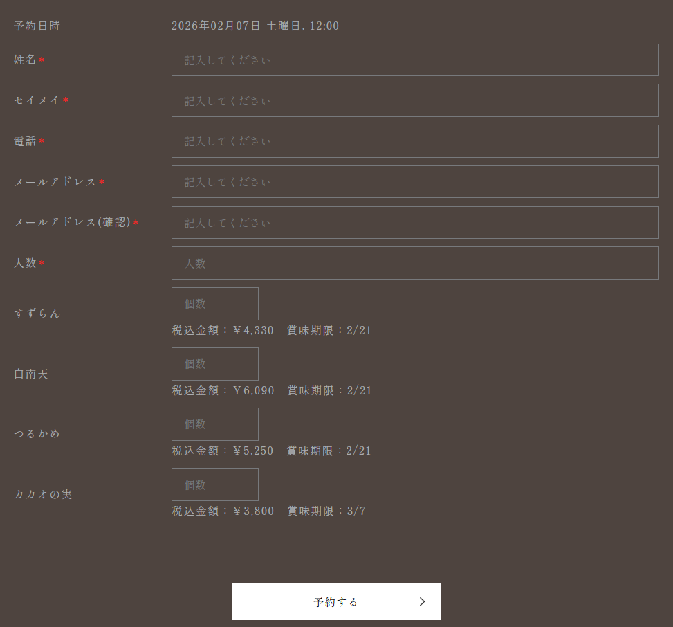 続けてご入力いただきます。同時に、クッキー缶のご予約を承ります